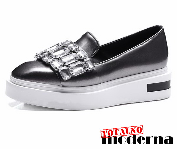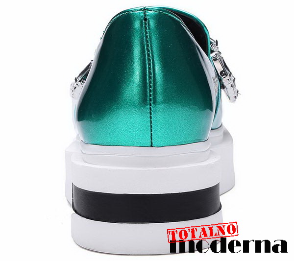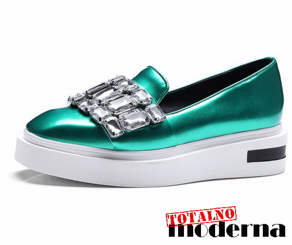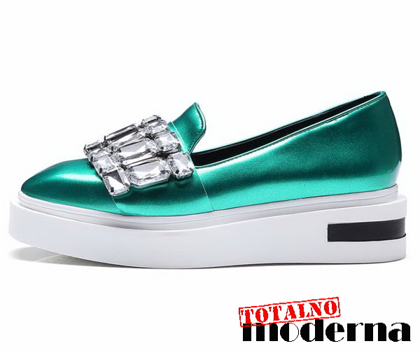 Lude,neobične cipele u dve fenomenalne boje,metalik siva i metalik zelena sa srebrnim kristalima koji se nalaze sa gornje strane.