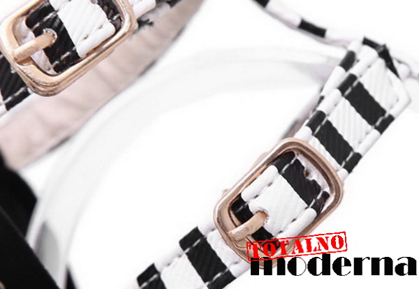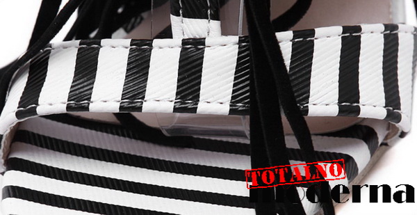 Interesantne sandale sa crno belim kaiševima,štiklom i rubom.