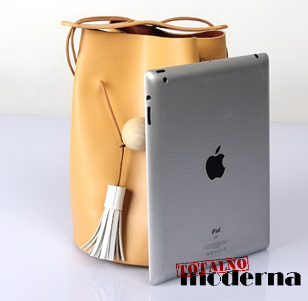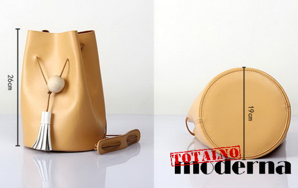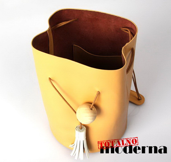 Dno je kružnog oblika. Kožni tanki kaiševi se zategnu i na taj način se torba zatvara.