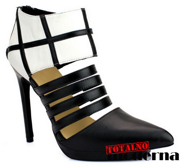 Elegantne crno bele kožne cipele sa štiklom visine 11 cm.