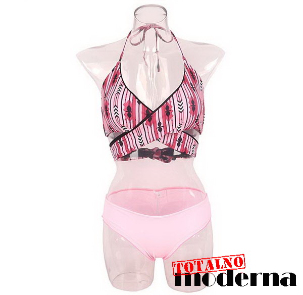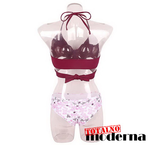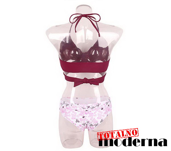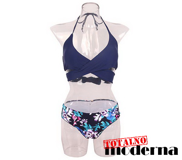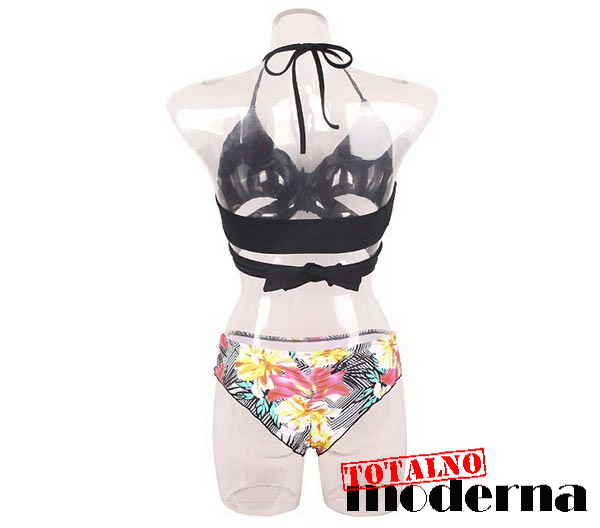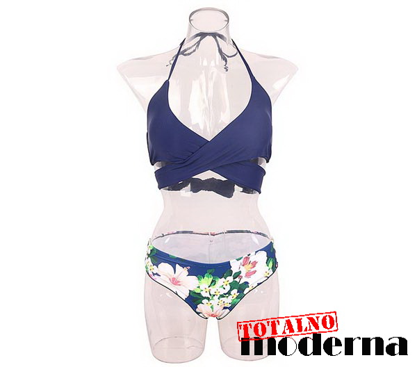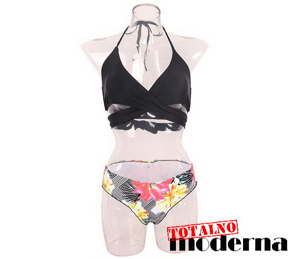Kupaći kostimi iz dva dela nova sezona. Dvodelni kupaći kostimi kojima je gornji deo jednobojan a donji je u cvetnom dezenu sa blagim karnerom na rubu.