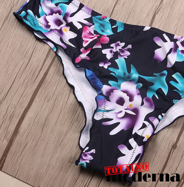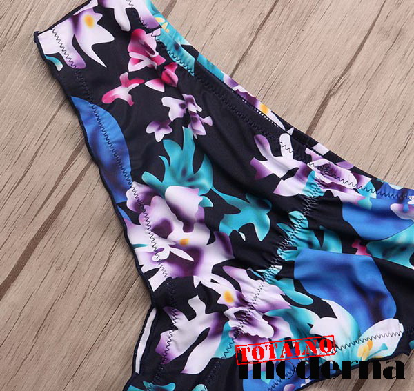 Dvodelni kupaći kostimi kojima je gornji deo jednobojan a donji je u cvetnom dezenu sa blagim karnerom na rubu.