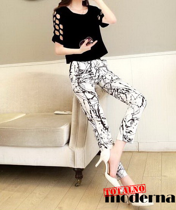Bluza je bele ili crne boje sa isečenim rupama u gornjem delu rukava koji su 3/4 i jako je interesantna.
