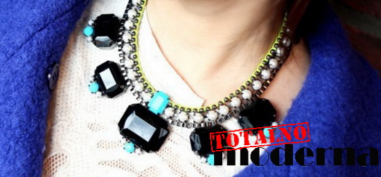 sa velikim crnim kamenjem i belim perlama u lancu.