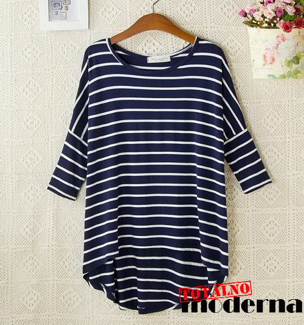 Mornarske bluze. Jednostvane,mornarske bluze teget sa belim prugama i bele sa teget prugama. Ležerne i komotne za letnje večeri pogotovo lepo stoje na preplanuli ten. Rukavi su 3/4,izrez je ovalan,pozadi su duže a napred kraće. Idu na bele pantalone ili klasične teksas farmerke. Uz dobru ogrlicu ili mindjuše izgledaćete sveže i opušteno.