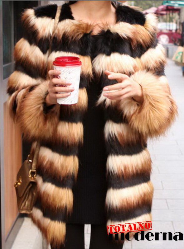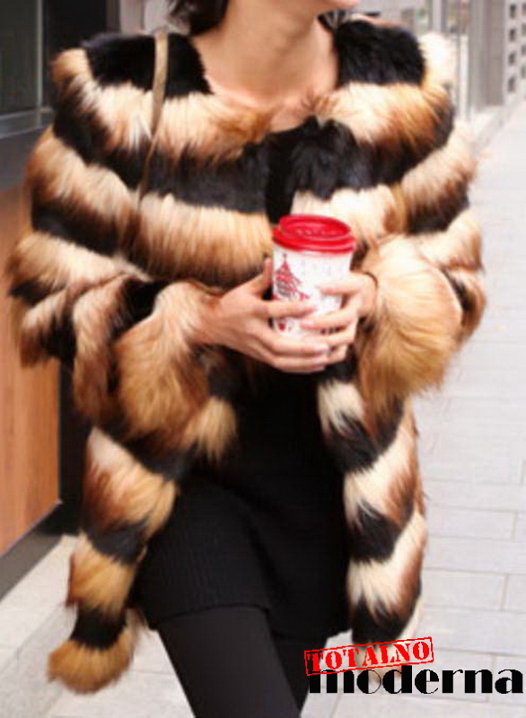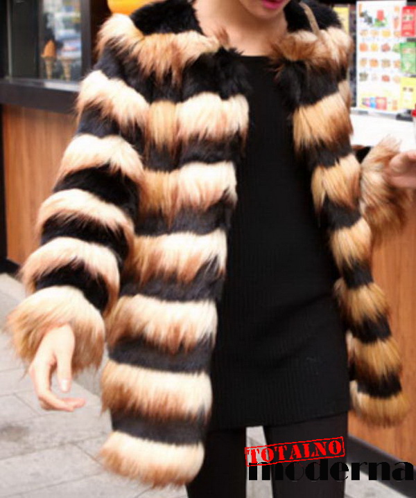 Totalno moderna bunda od veštačkog krzna u dve boje. Model za glamurozan i elegantan izgled
